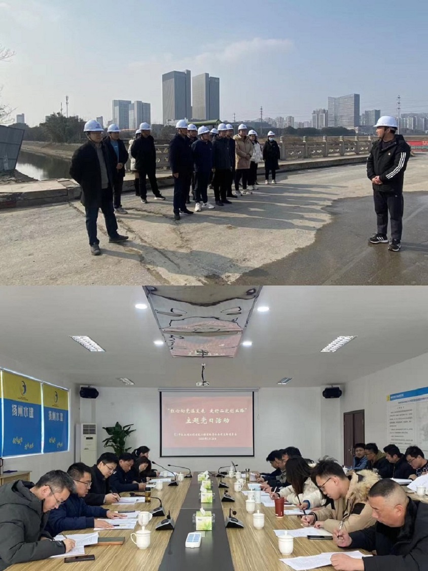 【概要描述】為深入學(xué)習(xí)貫徹黨的二十大精神,結(jié)合擦亮“紅心”黨建品牌及“學(xué)習(xí)企業(yè)發(fā)展史走好二次創(chuàng)業(yè)路”活動,2月24日,揚州水利建筑工程有限責任公司黨支部組織開展“紅心向黨謀發(fā)展走好二次創(chuàng)業(yè)路”主題黨日活動,支部全體黨員、入黨積極分子子和開發(fā)區(qū)EPC項目部有關(guān)人員參加活動?! 』顒邮紫葏⒂^了開發(fā)區(qū)EPC項目部二橋河整治施工現(xiàn)場,項目部工作人員從建設(shè)進度、安全、質(zhì)量管理等方面進行了講解。隨后,全體人員在項目部會議